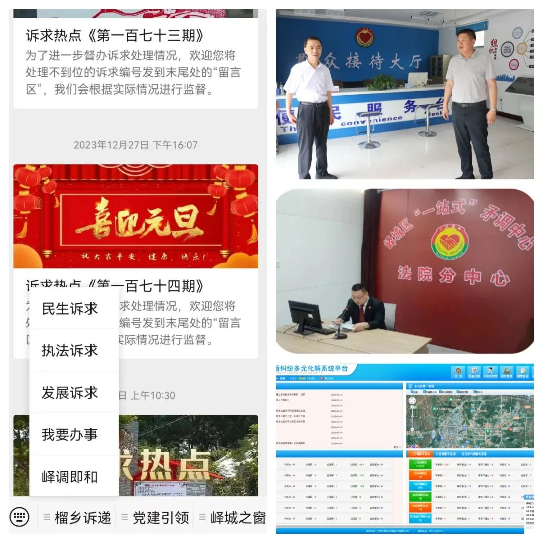 成立由区委书记张熙滨、区长姜妍任双组长的峄城区“枣解决·枣满意”治理服务体系建设运行工作领导小组。明确区委常委、政法委书记袁伟兼任办公室主任,负责专班日常工作。制发了《峄城区“枣解决.枣满意”治理服务体系建设运行工作方案》及诉求办理规范、考核办法等配套制度。平台运行以来,注册人数突破14.6万人,共受理各类诉求3233件,办结满意率99.63%,一次办结率及满意率处于全市前列。用心提升能力,用力消除盲点,用情服务群众,完成“榴乡诉递”共享版建设。2023年,“榴乡诉递”中心共接待服务省内外考察调研交流30余批次,共受理诉求34053件,办结满意率98.46%。启动全域“2+10”行业领域平安创建活动,不断拓展平安创建的广度和深度。抓好平安峄城、平安街镇、平安社区(村)等区域平安创建和基层平安创建,深入推进“平安家庭”“平安校园”“平安医院”“平安景区”“平安市场”“平安交通”等行业领域平安创建,实现平安创建全覆盖,不断激活“平安细胞”。广泛动员群众参与社会治理和平安建设,积极打造共建共治共享的基层社会治理格局。注重党建引领,统筹推进乡村振兴、美丽乡村、文明创建、积分治理、法治建设等资源整合,全面推广“五色花”社区治理、红黄蓝三色积分治理,“党建+微网格”治理模式,做到多点开花、亮点纷呈。目前,全区新建精治村居30个,示范精治村居15个,精治小区10个。进一步完善网格员考核评价体系,优化考核项目,提高网格员为民服务质效。加强网格公示走访,全区各镇(街道)、村居(社区)统一更换网格员公示牌,组织网格员入户走访9.8万户,帮助群众解决问题13.8万件。规范“枣治理”平台网格地图绘制,绘制率已达100%。积极争取市奖补资金,2023年前三季度共争取市级大网格体系奖补资金102.5万元,全部拨付镇街。大网格体系建设位居全市前列。打造“峄调即和”品牌,做实“一窗口受理、一站式调处、一揽子解决”矛盾纠纷多元化解机制。《长安》杂志刊发“峄调即和”经验做法,“平纷驿站”多元化解品牌入选省级“枫桥经验”工作法。依托“榴乡诉递”平台,建成“峄调即和”矛盾纠纷多元化解平台,全年共化解矛盾纠纷3826件,群众满意率为99.56%。开展法治文化基层行活动活动39次,受益群众12900余人;“百名法学家百场报告会”法治宣讲活动7场次,近1500名工作人员参加讲座学习;开展主题宣传11次,累计发放普法教材、法治宣传单3000余份,受教育群众8000余人次。邀请首席法律咨询专家参与涉法涉诉案件评查4起,召开企业合规和法治营商环境座谈会,成立研究中心,助力营造法治化营商环境。