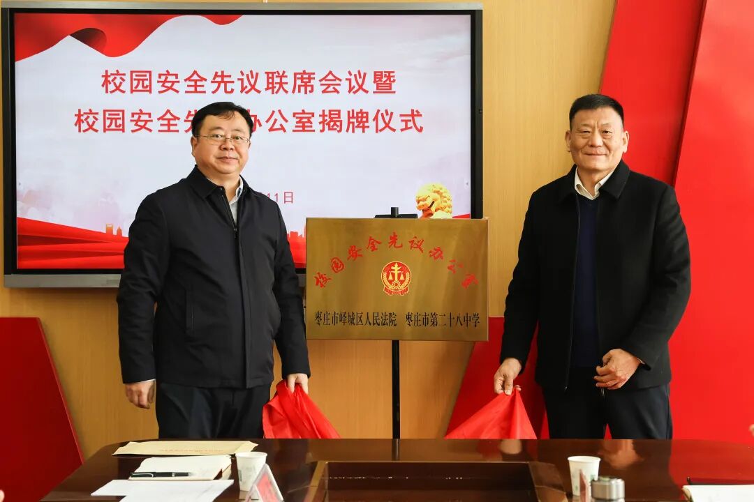 为切实保障在校学生合法权益,维护未成年人身心健康,从源头上预防和减少未成年人犯罪。12月11日上午9时,枣庄市峄城区人民法院联合区检察院、区公安分局、区妇联、区教体局、区民政局、区司法局在枣庄市第二十八中学举行“校园安全先议办公室”揭牌仪式。仪式上,枣庄市峄城区教育和体育局党组书记、局长张勇与枣庄市峄城区人民法院党组副书记、副院长郭方冰共同为峄城区首个“校园安全先议办公室”揭牌。 会议审议并通过了《关于开展校园安全先议工作的实施办法》(草案),与会同志就校园安全先议工作进行了深入交流。会议指出,未成年人作为社会中的弱势群体,其权益保护至关重要。为了有效保障未成年人的安全和权益,需从以下几个方面着手:一、强化部门联动,建立联防联控机制,确保各部门之间协调合作,形成保护合力。二、夯实家庭监护主体,建立家庭沟通机制,发挥家庭保护作用,为未成年人健康成长创造良好环境。三、优化学校教育管理,发挥好心理辅导师作用,及时发现并解决学生心理问题,营造积极向上的校园氛围。四、构建社区预防体系,精准开展“一对一”帮扶,针对不同需求的未成年人提供个性化服务和支持,提升整体防护水平。 同时,会议强调了要深入探索未成年人罪错行为先议机制,审慎审查每一个未成年人的罪错行为,精准分级并采取恰当的保护性处分措施,为预防和减少在校学生违法犯罪、保护未成年人的合法权益树起坚实屏障。 下一步,峄城区人民法院将联合成员单位以校园安全先议办公室为依托,加强协调配合,持续夯实、创新未成年人保护举措,推动峄城区未成年人保护工作再上新台阶、取得新成效。