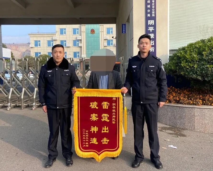 近日,市民颜先生将一面印有“雷霆出击 破案神速”的锦旗送到阴平派出所民辅警手中,以此表达对民辅警帮其找回遗失现金的感激之情。