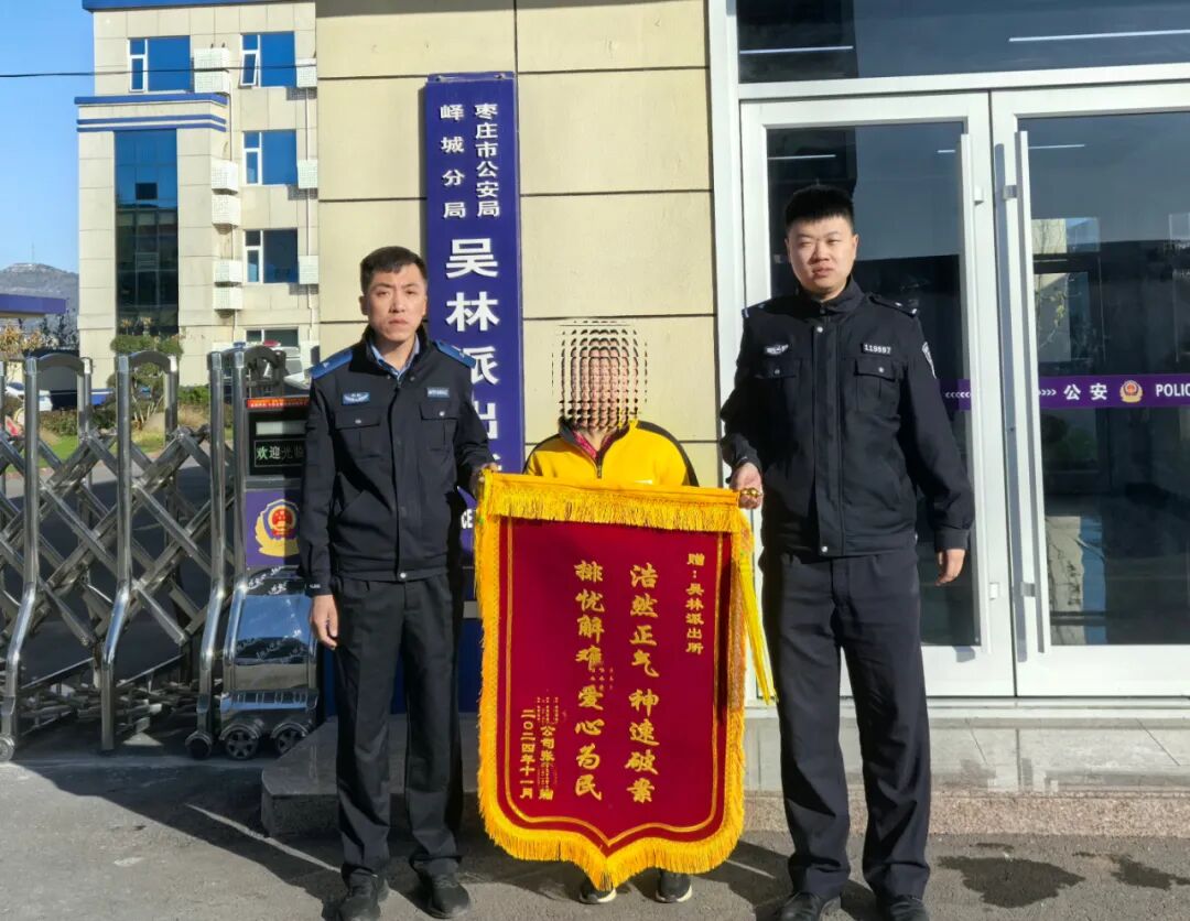 一幕幕感人瞬间 一次次暖心的救助 映衬着责任与使命 峄城公安 坚持聚焦人民群众关切 用“藏蓝星光” 守护“万家灯火” 用真情温暖着 每一个需要帮助的人 01 近日,坛山派出所民警在巡逻途中发现一名老人在路边徘徊,疑似走失。 02 近日,吴林辖区某超市员工张某将一面印有“浩然正气 神速破案 排忧解难 爱心为民”的锦旗送到吴林派出所民辅警手中,以此表达对民辅警及时为其追回货款的感激之情。 原来,事发当日张某在门店负责收款,一位顾客扫码支付,但因网络延迟原因,货款未能成功支付。因当时店里还有其他顾客,张某没有及时查看付款信息,对账时才发现货款没有到账。张某自己查找未果,很是着急,便报警求助。 随后,民警通过调取监控录像和多方排查走访,成功联系上了该顾客,将超市损失的钱款成功追回。 03 近日,古邵派出所民警在开展夜间巡逻工作时,发现一名年轻男子斜坐在路边,便停车上前询问,发现该男子因醉酒已神志不清。 因天气寒冷,民警一边将其搀扶至警车内,一边尝试与其沟通。经了解,该男子家住台儿庄区,因心情不好醉酒,回家途中迷了方向。民警向其确认了家人的联系方式,通知其父亲将其接回。 04