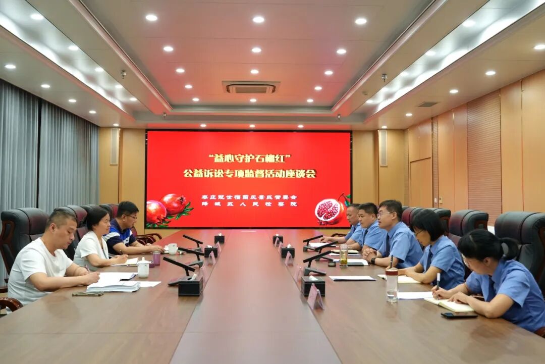 为贯彻落实习近平法治思想、习近平生态文明思想,践行“绿水青山就是金山银山”新发展理念,根据山东省人民检察院下发的《全省检察机关开展名山保护公益诉讼专项监督活动的实施方案》精神,结合人文地域特色及检察工作职能,峄城区检察院制定了《峄城区人民检察院开展 “益心守护石榴红”公益诉讼专项监督活动工作方案》(以下简称工作方案)。 2024年5月31日,峄城区检察院与枣庄冠世榴园风景区管委会(以下简称风管委)就如何形成工作合力,共同助力冠世榴园综合保护举行了座谈会。风管委党组成员、副主任滕侠,风管委下辖园林规划局局长李锋,自然保护区管理办公室副主任黄亚南,峄城区检察院党组成员、副检察长徐兴伟,第二检察部干警参加座谈。 会上,峄城区检察院介绍了工作方案的起草背景和主要内容,明确了今后工作中会围绕生态环境和资源保护、文物和文化遗产保护等问题多发领域,重点监督七大类突出问题,运用好磋商、提出诉前检察建议、提起诉讼、支持起诉等手段,能动履行公益诉讼职能。风管委相关负责同志介绍了冠世榴园景区的地理位置、历史沿革、特色产业、文旅项目等基本情况,表示冠世榴园的石榴产业取得了“石榴种质保存及创新利用、石榴盆景产业发展、石榴全产业链发展水平均领先全国”的丰硕成果。 滕侠副主任表示,冠世榴园景区是枣庄市最早获评的国家4A级旅游景区,先后荣获国家古石榴森林公园、首批全国农业旅游示范点、省级风景名胜区等多个称号,峄城石榴在山东省首个通过国家级地理标志保护和地理标志产品保护双认证,是集石榴资源开发、旅游区建设、绿化美化于一体的园区。通过此次座谈会,全面了解了检察机关的法律监督职能,特别是公益诉讼职能,下一步将加强与检察机关的沟通、协作、配合,按照工作方案的重点,稳步推进工作,力争建立起冠世榴园大保护的格局。 徐兴伟副检察长表示,峄城区检察院将与风管委做好沟通和交流,双方同心同向,运用好磋商、提起诉讼等手段,能动履行公益诉讼职能,助力冠世榴园综合保护,形成长效工作机制,合力塑造“水光山色、雅致榴城”的城市品牌,实现冠世榴园综合保护、司法保护与社会经济发展的“双赢多赢共赢”局面,展现出检察机关的政治担当、法治担当、检察担当。